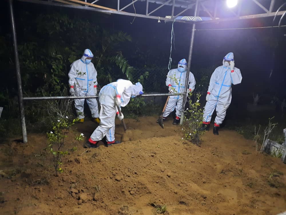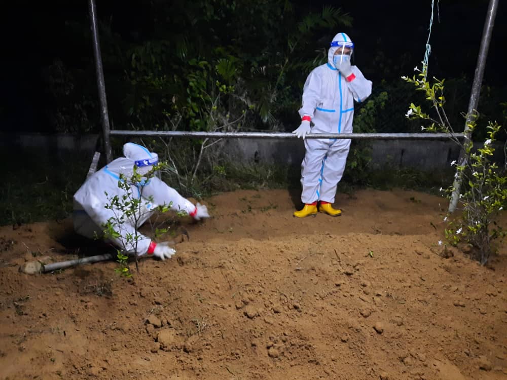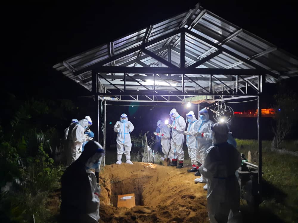 Diketuai PPgB Azhar Elmi bin Mustofar bersama 08 anggota bertugas dari Balai Bomba Dan Penyelamat Pasir Puteh hadir ke Tanah Perkuburan Islam Kg.Banggol Setol,Pasir Puteh untuk pengurusan pengebumian jenazah Covid-19. Anggota menggunakan 1 unit pam dengan campuran air,dettol dibancuh mengikut sukatan. Anggota memakai pakaian lengkap PPE dan membuat semburan keseluruhan kenderaan dan anggota yang terlibat bagi mencegah penyakit berjangkit Covid-19 sehingga selesai sepenuhnya.
