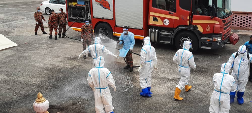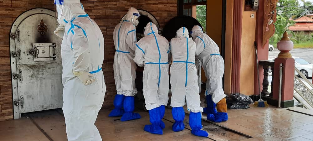 PBK I Nazdy b. Mohd Noor bersama 5 anggota bertugas hadir ke Tanah Perkuburan Siam Wat Chonprachumthatchanaram untuk pengurusan pengebumian Warga Emas Keturunan Siam ( 72 Tahun ) Covid-19. Anggota menggunakan 1 unit pam dengan campuran air,dettol dibancuh mengikut sukatan. Anggota memakai PPE lengkap dan membuat semburan keseluruhan kenderaan dan anggota yang terlibat bagi mencegah penyakit berjangkit Covid-19 sehingga selesai sepenuhnya.