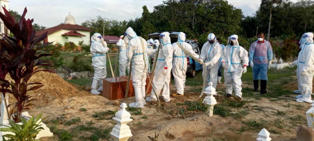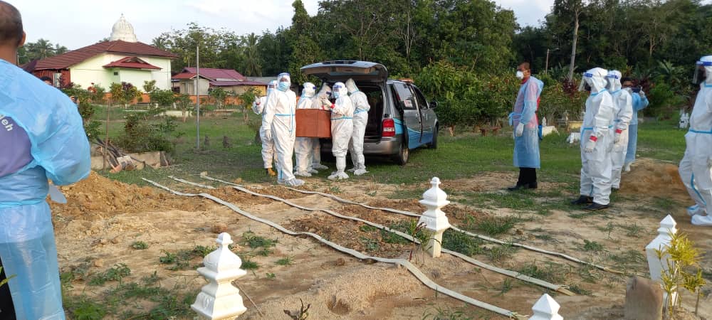 Diketuai PPgB Azhar Elmi bin Mustofar bersama 08 anggota bertugas dari Balai Bomba Dan Penyelamat Pasir Puteh hadir ke Tanah Perkuburan Islam Kampung Bukit Awang Pasir Puteh untuk pengurusan Jenazah Covid-19. Anggota menggunakan 1 unit pam dengan campuran air,dettol dibancuh mengikut sukatan. Anggota memakai pakaian lengkap PPE dan membuat semburan keseluruhan kenderaan dan anggota yang terlibat bagi mencegah penyakit berjangkit Covid-19 sehingga selesai sepenuhnya.