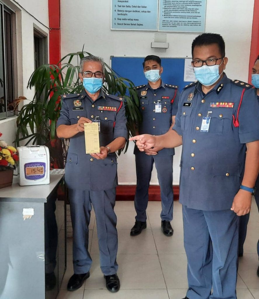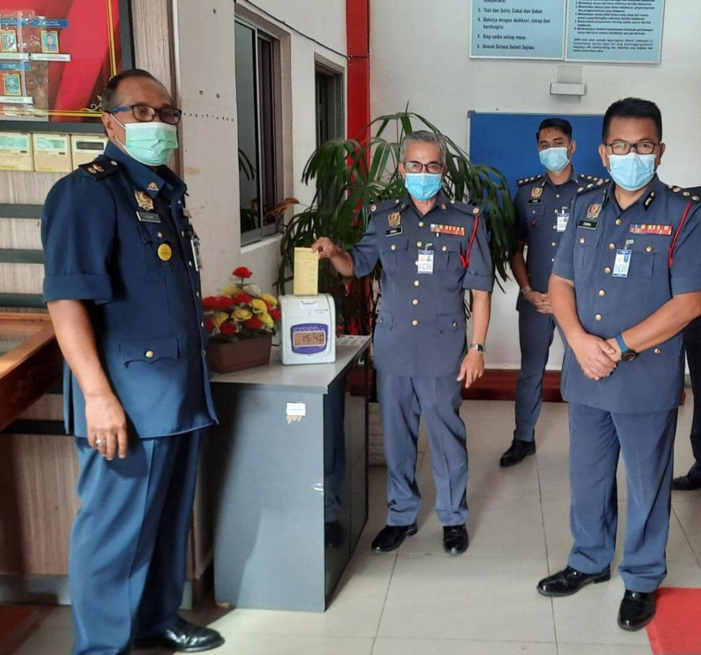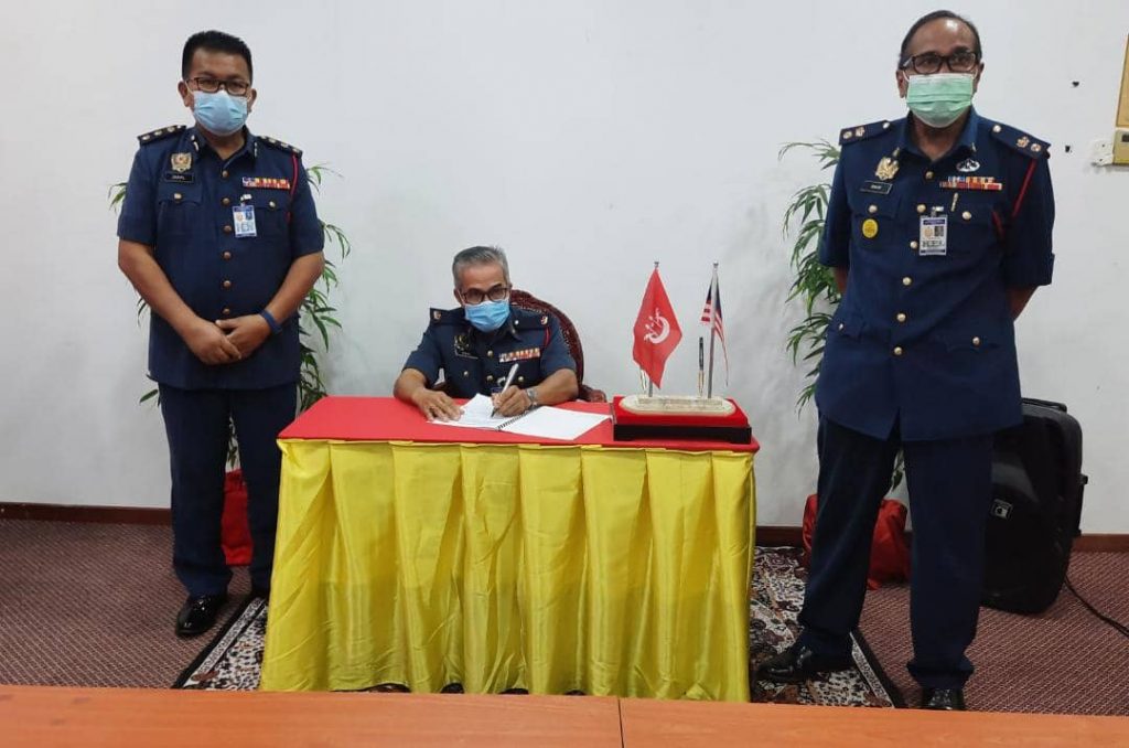 YS PPjB Jainal @ Zainal bin Madasin, Pengarah JBPM Negeri Kelantan, menyaksikan nota serah tugas yang ditandatangani oleh PgKB II Ismail bin Idris, Penolong Pengarah Bahagian Penyiasatan,pada Khamis(21 Julai 2021) di pejabat Bahagian Penyiasatan Kebakaran. PgKB II Ismail bin Idris akan bersara wajib pada 25 Julai 2021 selepas berkhidmat selama 34 tahun dalam JBPM(25 Julai 1987 hingga 25 Julai 2021). PgKB II Ismail bin Idris, turut mengetik kad perakam waktu terakhir sebagai ketandaan berakhirnya perkhidmatan bersama JBPM. Kami mewakili warga JBPM Negeri Kelantan khasnya, dan JBPM amnya mengambil kesempatan merakamkan setinggi-tinggi penghargaan dan terima kasih diatas jasa dan khidmat bakti yang cemerlang kepada jabatan ini. Turut Hadir adalah Timbalan Pengarah, Penolong-penolong Bahagian serta pegawai Jabatan.