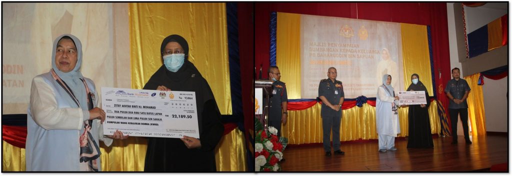 Bertempat di Dewan Kompleks Kuarters JBPM Cheras, Kuala Lumpur telah diadakan Majlis Penyampaian Sumbangan kepada balu Allahyarham PB Baharudin bin Sapuan yang telah kembali ke Rahmatullah akibat kemalangan jalan raya sewaktu bertugas pada 7 Jun 2020 yang lalu. Majlis telah disempurnakan oleh YB Puan Hajah Zuraida Binti Kamaruddin, Menteri Perumahan dan Kerajaan Tempatan