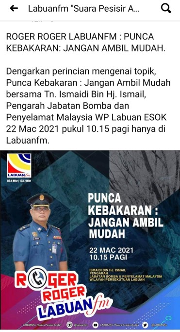 PROGRAM ‘ROGER-ROGER LABUAN FM’ BERSAMA PENGARAH JBPM LABUAN