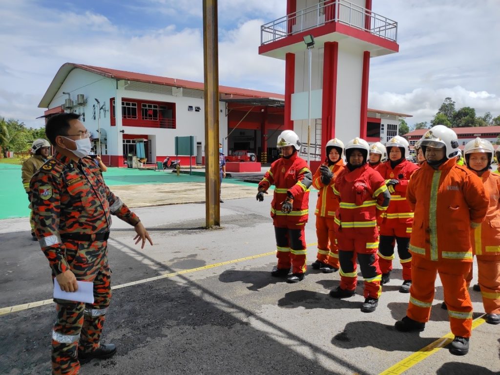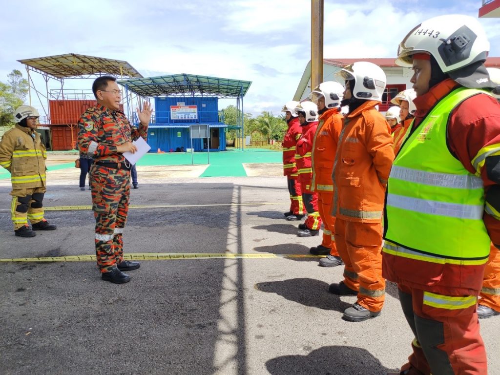 YS PKPjB Khirudin bin Drahman@Hussaini, Pengarah JBPM Sarawak meninjau suasana ketika berlansungnya Kursus Road Trafic Accident (RTA) di Akademi Bomba dan Penyelamat Bau pagi tadi.Kursus RTA yang berlansung selama 2 minggu, mulai 15 sehingga 26 Mac 2021 ini, dihadiri oleh seramai 16 orang Pegawai Bomba Wanita yang terpilih daripada balai bomba di Sarawak.