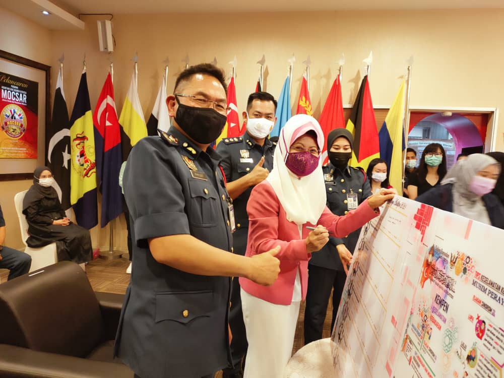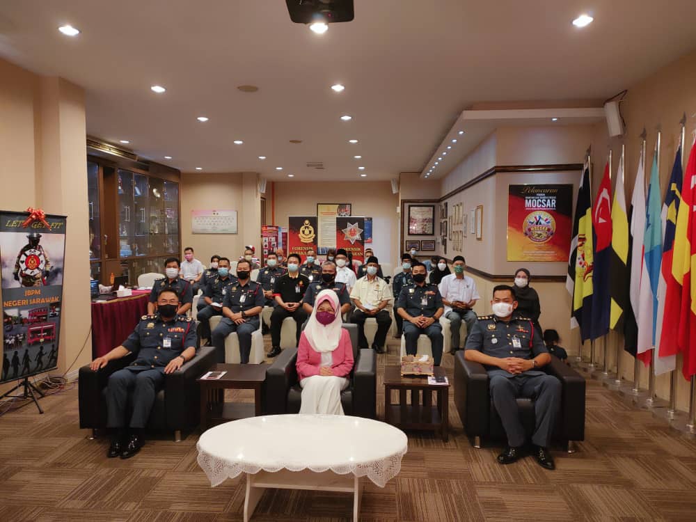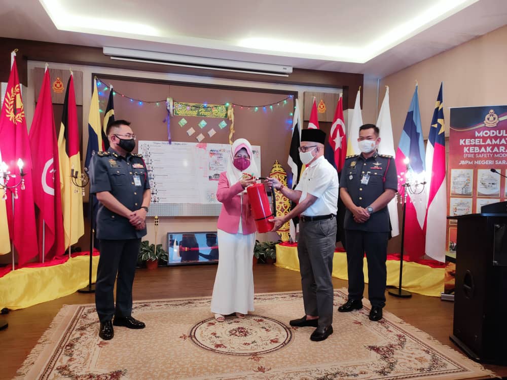 Majlis Ringkas Perasmian Kempen Keselamatan Kebakaran Sempena Hari Raya Aidilfitri 2021 telah disempurnakan oleh YB Dato’ Sri Hajah Fatimah Abdullah Menteri Kebajikan, Kesejahteraan Komuniti, Wanita, Keluarga dan Pembangunan Kanak Kanak Sarawak di Ibu Pejabat JBPM Negeri Sarawak pagi ini.Dalam ucapannya, beliau berterima kasih kepada JBPM atas usaha yang dilakukan dalam memberi kesedaran keselamatan kepada maayarakat.Hadir sama ialah YS PKPjB Khirudin Drahman Pengarah JBPM Negeri Sarawak dan PPjB Tiong Ling Hii, Timbalan Pengarah JBPM Negeri Sarawak.