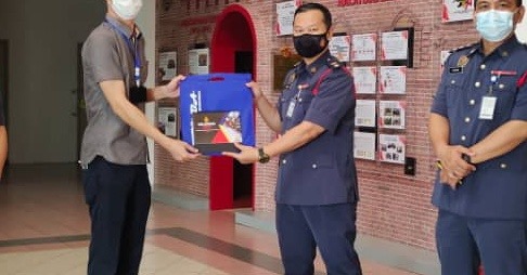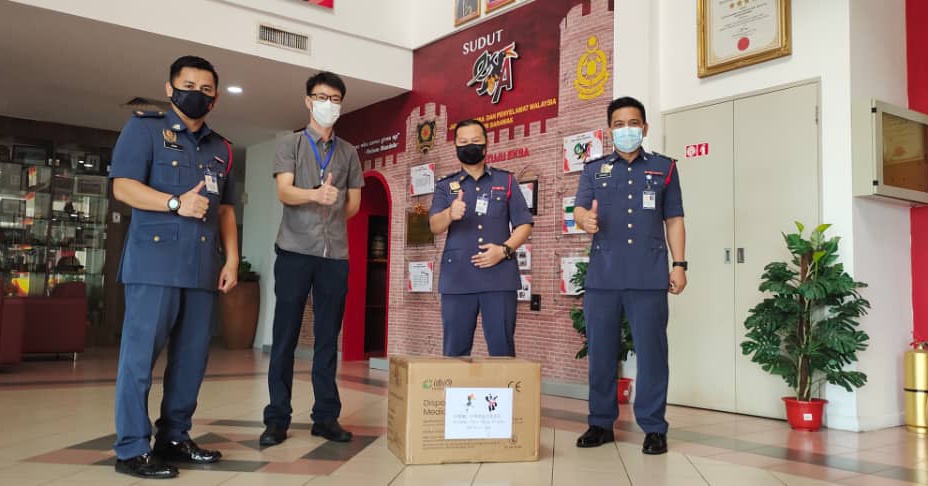 Kuching, 24 Mac 2021 PgKB I Henderi Ardimansyah, Penolong Pengarah Operasi mewakili jabatan menerima sumbangan facemask daripada wakil Konsulat China ke Malaysia pagi ini