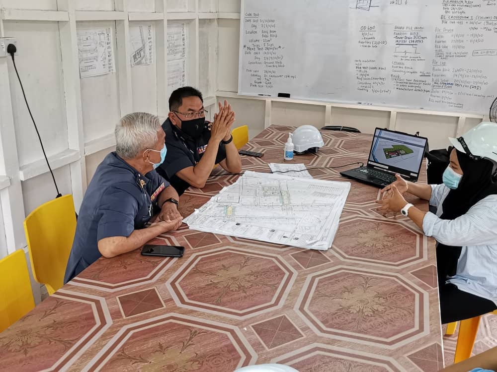 YS PKPjB Khirudin bin Drahman@Hussaini, Pengarah JBPM Negeri Sarawak melawat tapak pembinaan Balai Bomba dan Penyelamat Lutong di Miri pagi ini.Mengiringi beliau ialah PgKB I Law Poh Kiong, Ketua Bomba Zon Miri.