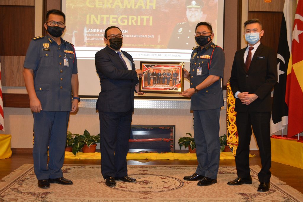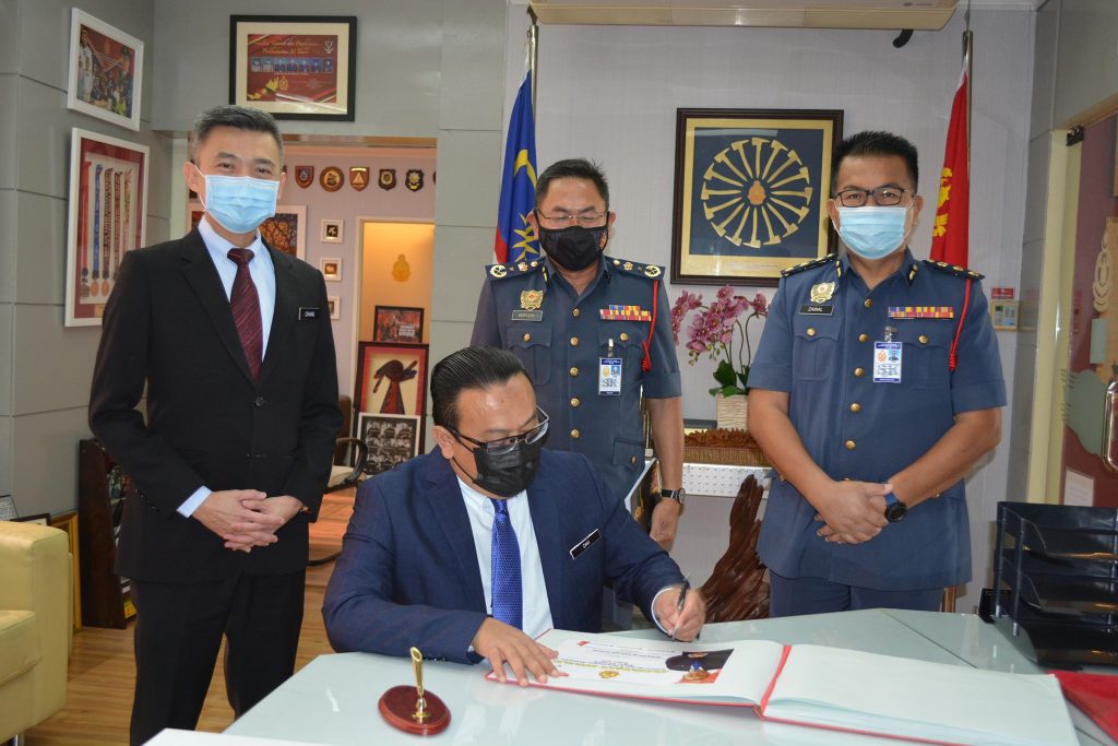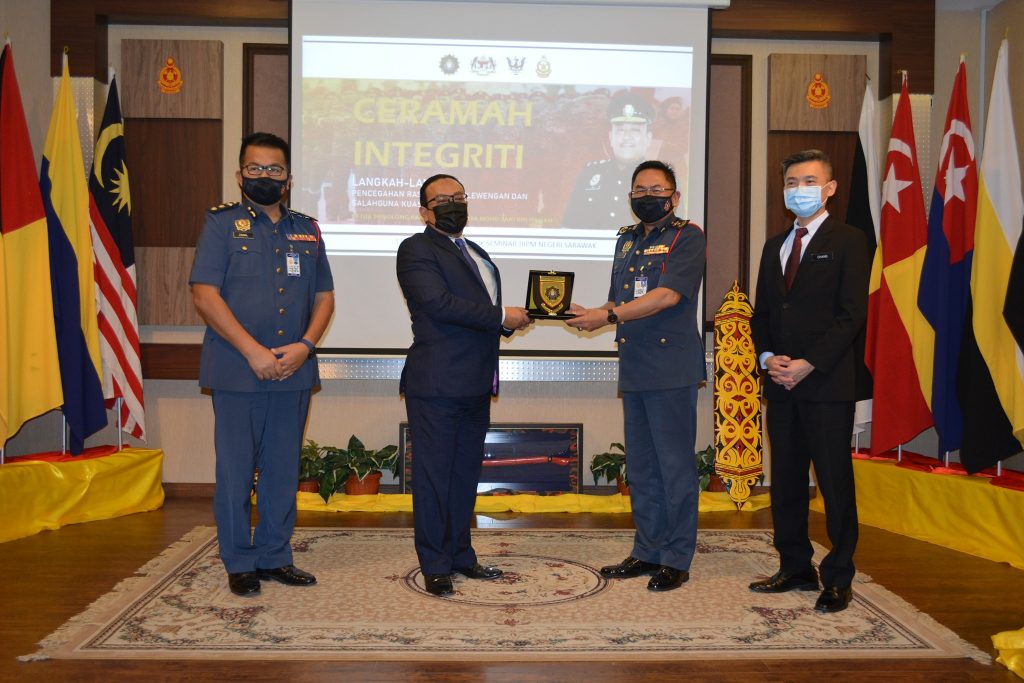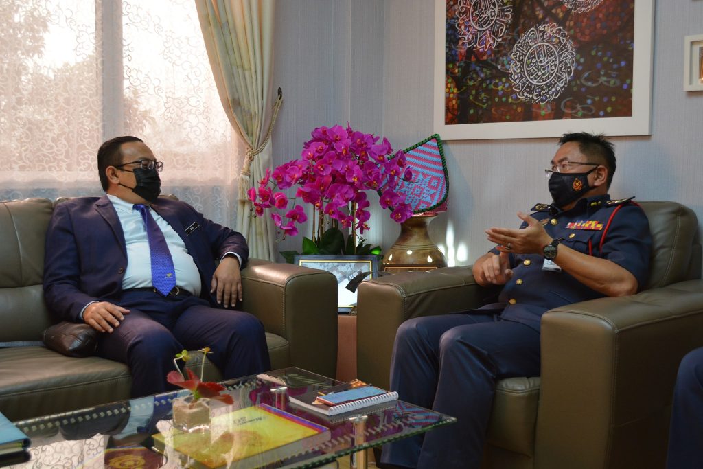 Kuching, 17 Mac 2021 YS PKPjB Khirudin bin Drahman @ Hussaini, Pengarah JBPM Sarawak menerima kunjungan hormat daripada KPKPj Mohd Zaki bin Hassan, Pengarah SPRM Sarawak di pejabat beliau pagi tadi.Di samping itu, Pengarah SPRM Sarawak juga turut memberi taklimat integriti ringkas bertajuk “Langkah-langkah Pencegahan Rasuah, Penyelewengan dan Salah Guna Kuasa” dan ditonton secara maya oleh seluruh Balai Bomba di seluruh Sarawak.