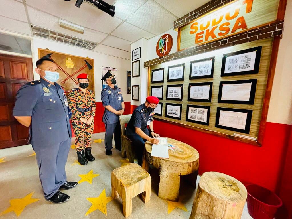 YS PKPjB Khirudin bin Drahman @ Hussaini, Pengarah JBPM Sarawak berkesempatan melawat BBP Marudi sekaligus melancarkan sudut EKSA semasa lawatan beliau ke Zon 6 baru-baru ini.Disamping itu, YS Pengarah juga telah menyampaikan Sijil Perkhidmatan Terpuji 2020 kepada pegawai-pegawai yg telah menunjukkan komitment dan dedikasi yg terbaik sepanjang tahun 2020.