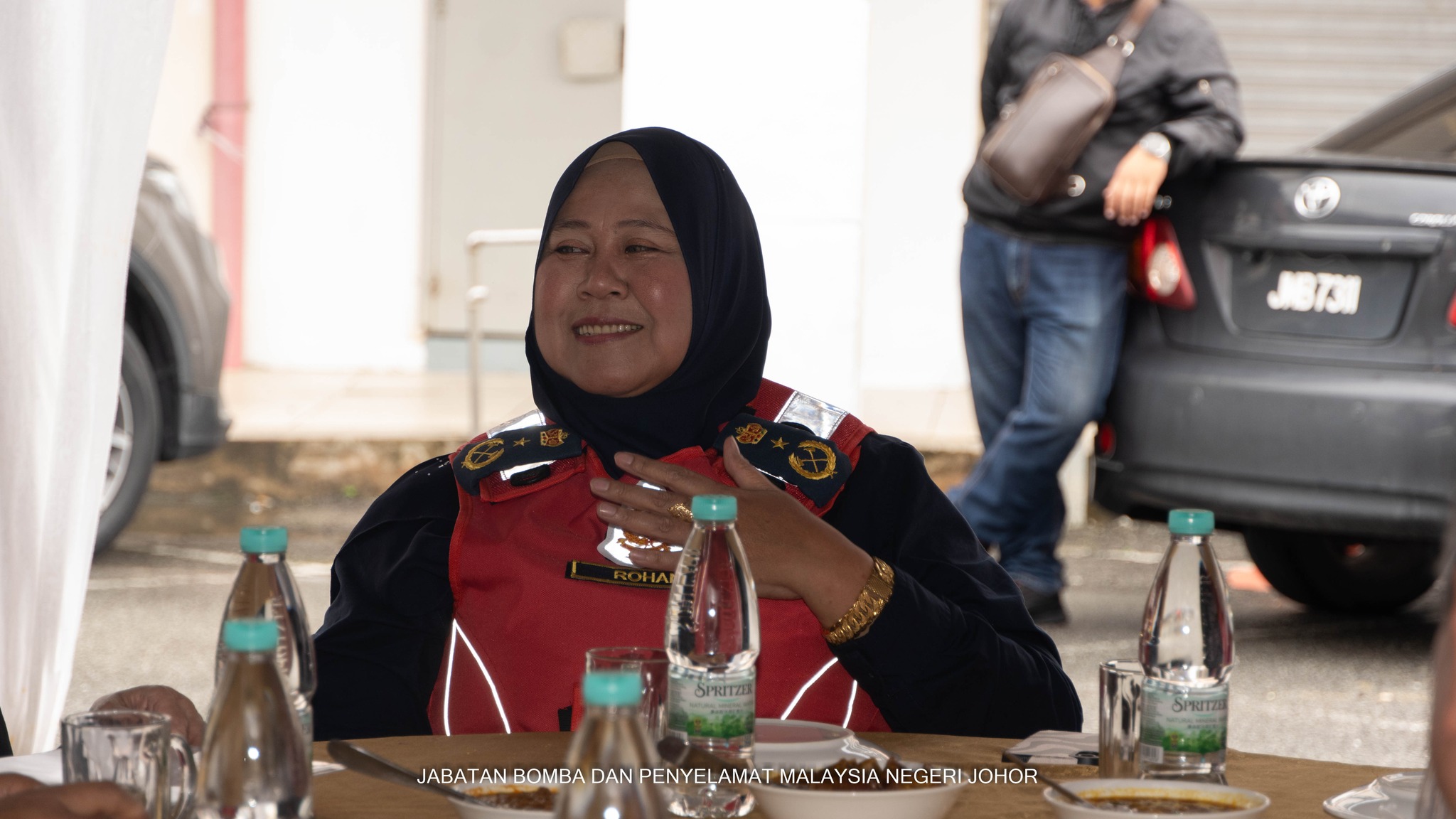 Turut hadir ialah YBhg. Datin Neta Abdul Hamid, Yang Dipertua PERISMA Kebangsaan; YS PKPjB Siti Rohani binti Nadir, Pengarah JBPM Negeri Johor; PPjB Muhammad Al Mustakin bin Abdul Hady, Timbalan Pengarah JBPM Negeri Johor; penolong-penolong pengarah bahagian JBPM Negeri Johor; Ahli-ahli PERISMA JBPM Negeri Johor; ketua-ketua zon JBPM Negeri Johor; serta ketua-ketua balai dari Zon 2 JBPM Negeri Johor.