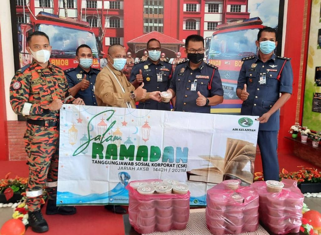 YS PPjB Jainal @ Zainal Madasin, Pengarah JBPM Negeri Kelantan menerima ” Kongsi Rezeki Bubur Lambuk ” yang disampaikan oleh YBrs. Encik Tuan Mohd Nor bin Tuan Yahya, Penyelaras Perhubungan Khas Air Kelantan Sdn. Bhd. pada Isnin( 10 May 2021). Majlis ringkas itu diadakan di lobi Ibu Pejabat JBPM Negeri Kelantan, yang disaksikan oleh PgKB I Anwar bin Abu Bakar , Timbalan Pengarah, PgKB I Mohd Wiladan bin Azhari, Penolong Pengarah Bahagian Operasi, dan TPgB Md Ayub bin Hasan, Zon Kota Bharu.