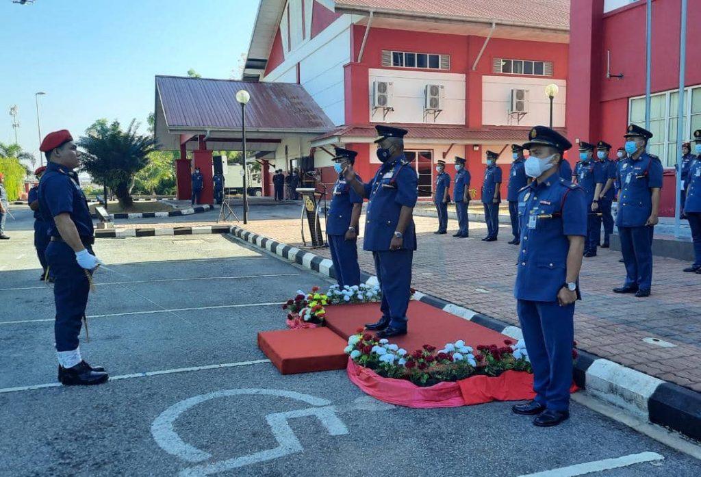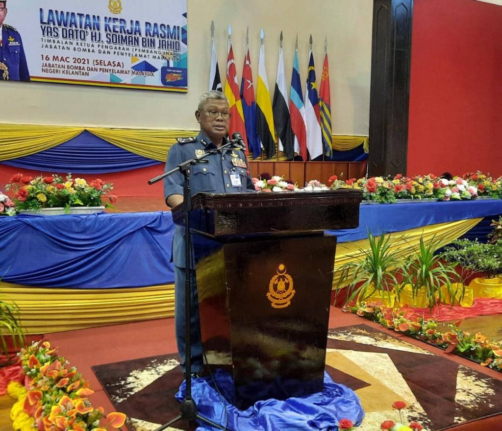 YAS Dato’ Haji Soiman bin Jahid, Timbalan Ketua Pengarah(Pembangunan) JBPM dalam lawatan kerja rasmi ke JBPM Negeri Kelantan dimulakan dengan menerima tabik hormat dan pemeriksaan perbarisan kehormat pada Selasa(16 Mac 2021). YAS Dato’ turut menyempurnakan pengisthiran nama “Dataran Dato’ Haji Soiman”, Program Penghijauan- Kempen Penanaman 100 juta pokok, dan menyampaikan ucapan kepada pegawai-pegawai jabatan di Dewan Utama JBPM Negeri Kelantan. Turut hadir PgKB I Anwar bin Abu Bakar, Timbalan Pengarah JBPM Kelantan, Penolong-Penolong Pengarah Bahagian, Ketua-ketua Zon, Ketua Balai, pegawai kanan, pegawai dan kakitangan JBPM Negeri Kelantan.
