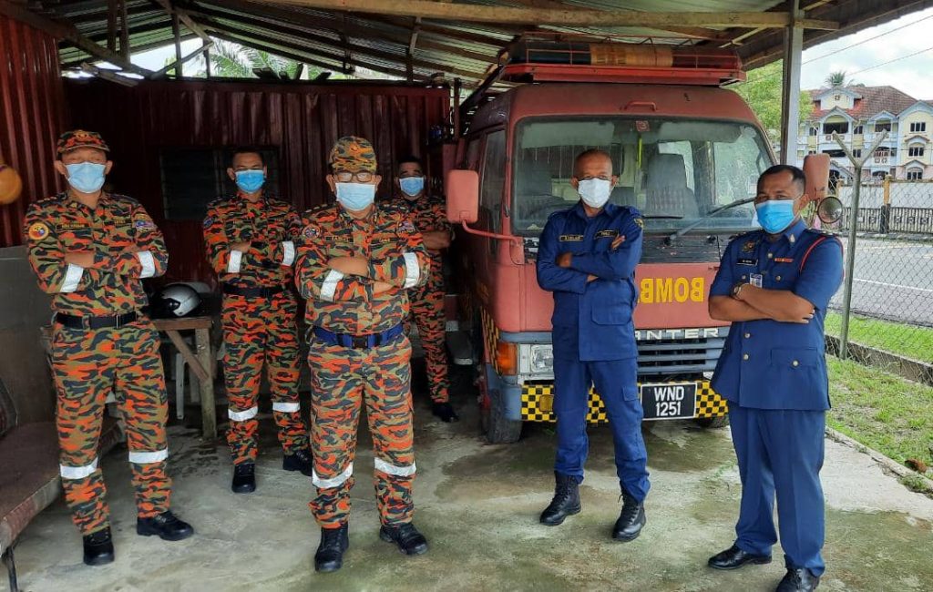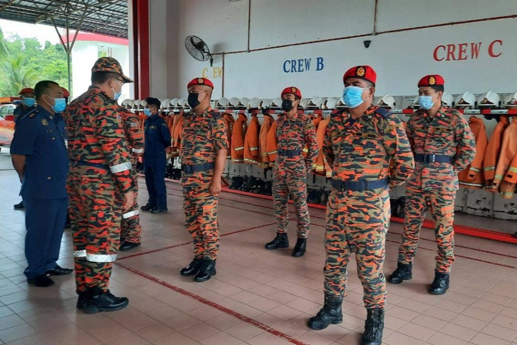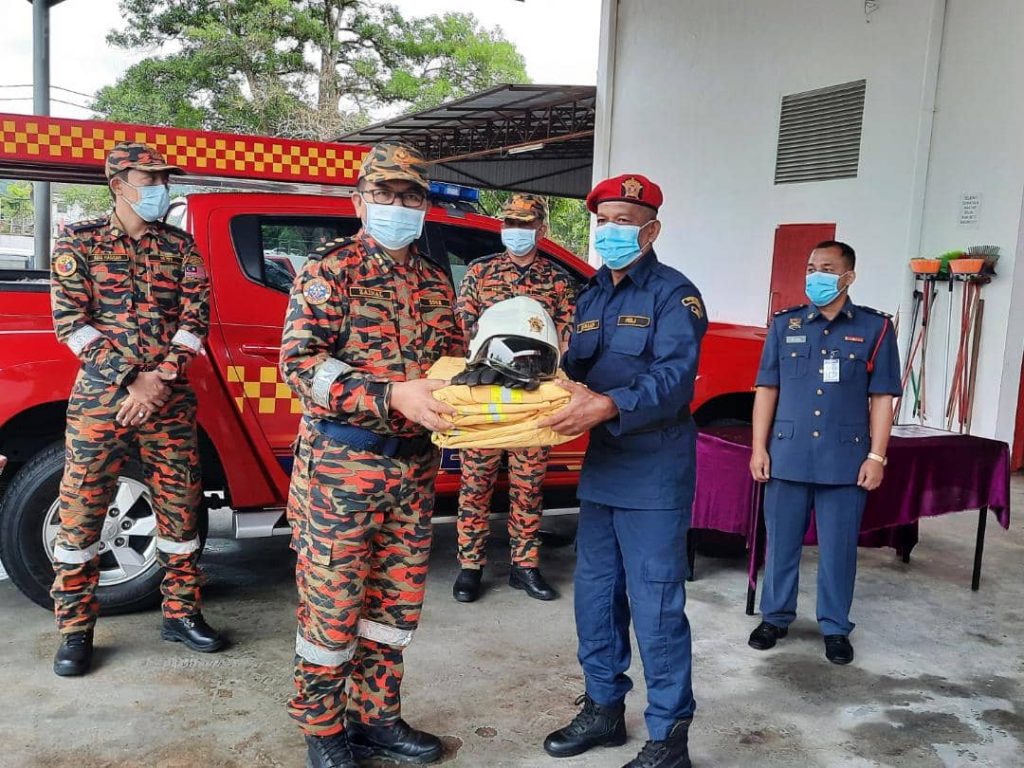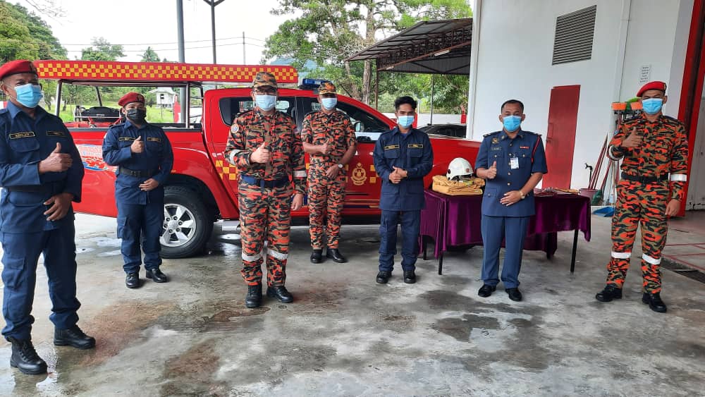 YS PPjB Jainal @ Zainal Madasin, Pengarah JBPM Negeri Kelantan, melaksanakan lawatan serta pemeriksaan pematuhan prosedur operasi standard(SOP) Covid-19, pemeriksaan pendaftaran My Sejahtera serta taklimat ringkas berkenaan tindakan yang perlu diambil oleh anggota bertugas bagi memastikan pematuhan kawalan keselamatan kendiri untuk mencegah penularan Covid-19 pada Ahad(11 Julai 2021) Di Balai Bomba dan Penyelamat Jeli. YS Pengarah turut menyampaikan pakaian operasi dan pelitup muka kepada Encik Roslan bin Mat Nordin Pengerusi Bomba Sukarela Jajahan Jeli bagi mengekang penularan wabak Covid-19. YS Pengarah turut meninjau Balai Bomba Sukarela Jajahan Jeli yang dihadiri oleh PPgB Mohd Adnin bin Ibrahim, Ketua Balai Bomba dan Penyelamat Jeli, PgB Abu Hasan bin Mohd Nawi @ Che Yahya Bahagian Operasi, PKPgB Che Mohd Fauzi bin Che Omar, PKPgB Mohd Faizol Hisyam bin Abdullah.