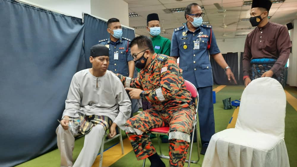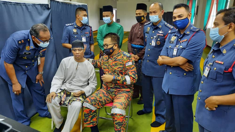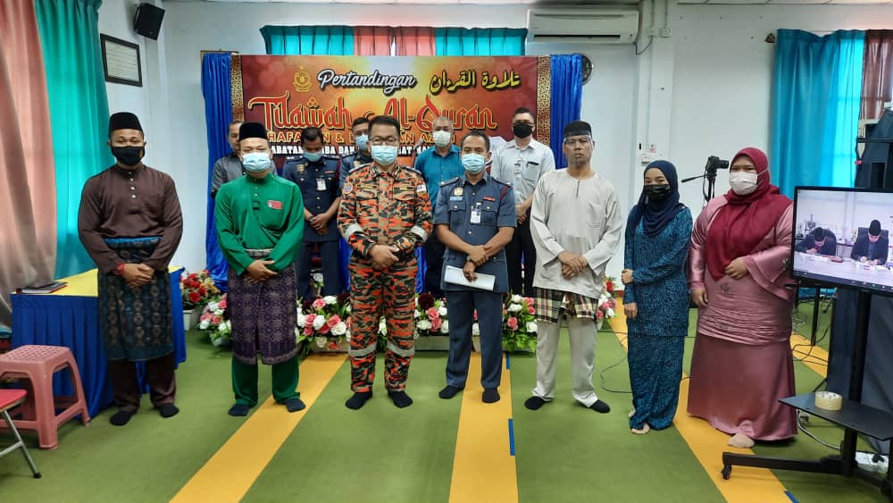 YS PPjB Jainal @ Zainal bin Madasin, Pengarah Jabatan Bomba dan Penyelamat Malaysia Negeri Kelantan, hadir memberi suntikan semangat kepada 3 peserta Pertandingan Tilawah Al-Quran, Hafazan dan Laungan Azan secara atas talian yang diadakan di Surau Ibu Pejabat JBPM Negeri Kelantan pada Selasa( 20 April 2021). YS Pengarah juga turut mengucapkan terima kasih kepada jawatankuasa kerja yang mengurus persiapan pertandingan itu. Hadir sama adalah PgKB I Anwar bin Abu Bakar, Timbalan Pengarah, Pegawai Kanan Jabatan serta anggota yang turut memberi sokongan kepada peserta.