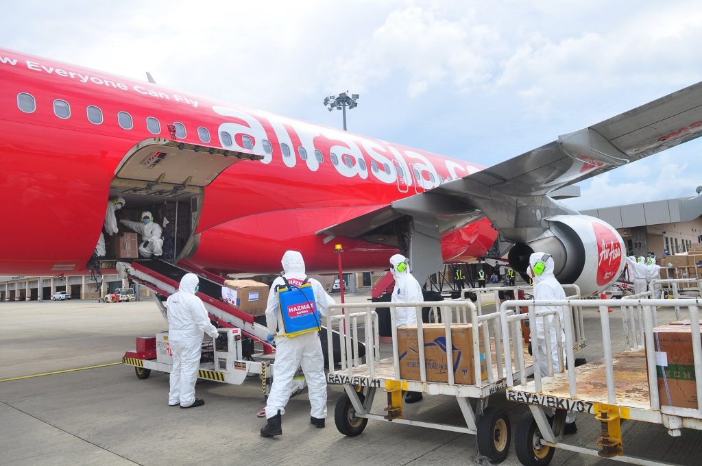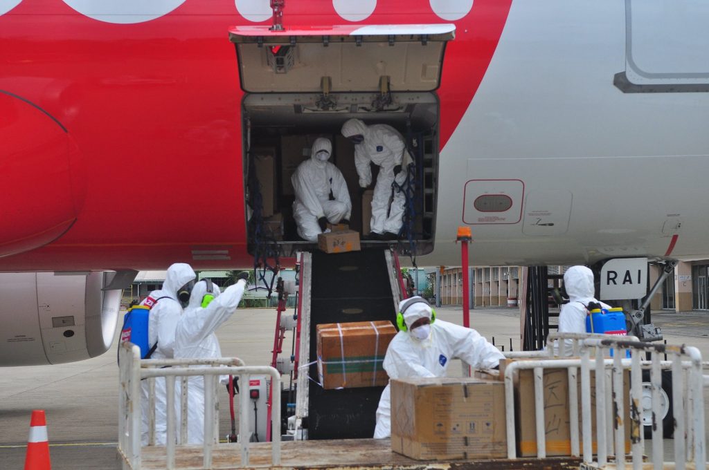 FightCOVID19 – OPS Nyah Cemar oleh Pasukan Unit HAZMAT & CBRNe JBPM Sabah bagi Barangan Bantuan Negara China di Lapangan Terbang Antarabangsa Kota Kinabalu Terminal 2 pada 29 Mac 2020