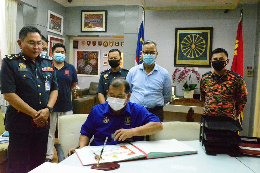 YS PKPjB Khirudin bin Drahman @ Hussaini, Pengarah JBPM Sarawak menerima kunjungan hormat daripada YB Datuk Wilson Ugak anak Kumbong, Ahli Parlimen P216 Hulu Rajang, merangkap Pengerusi NIOSH dan YB Datuk Liwan Lagang, Menteri Muda Elektrik Luar Bandar ADUN N.65 Belaga.