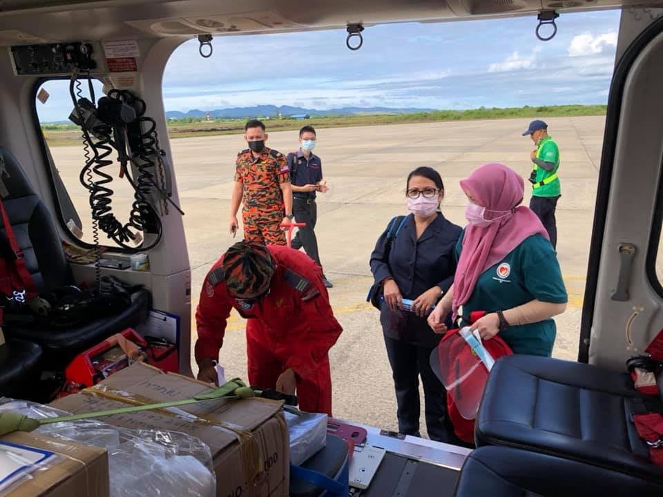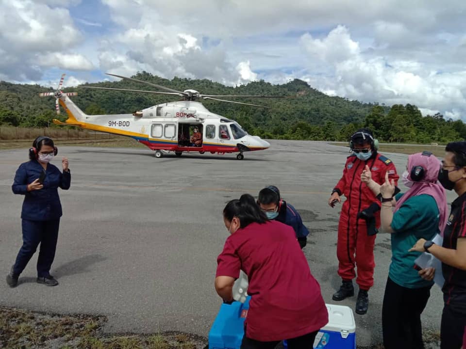 OPERASI PENERBANGAN LOGISTIK COVID-19 (PENGHANTARAN VAKSIN) oleh pesawat AW139 9M-BOD ( POU Miri JBPM ) Bomba dari pangkalan udara Operasi Bomba Miri ke Mulu.