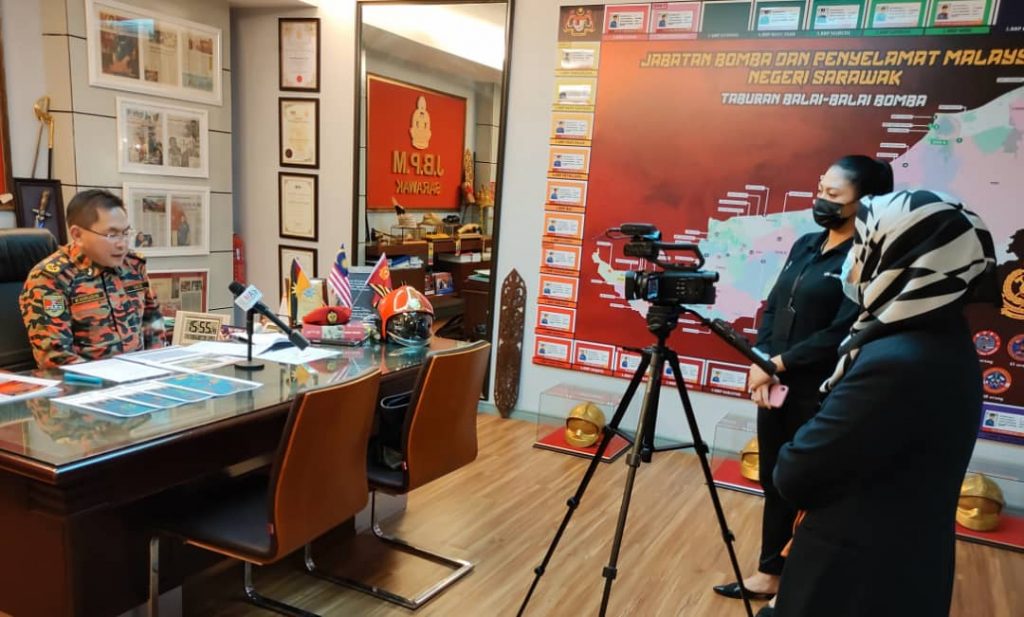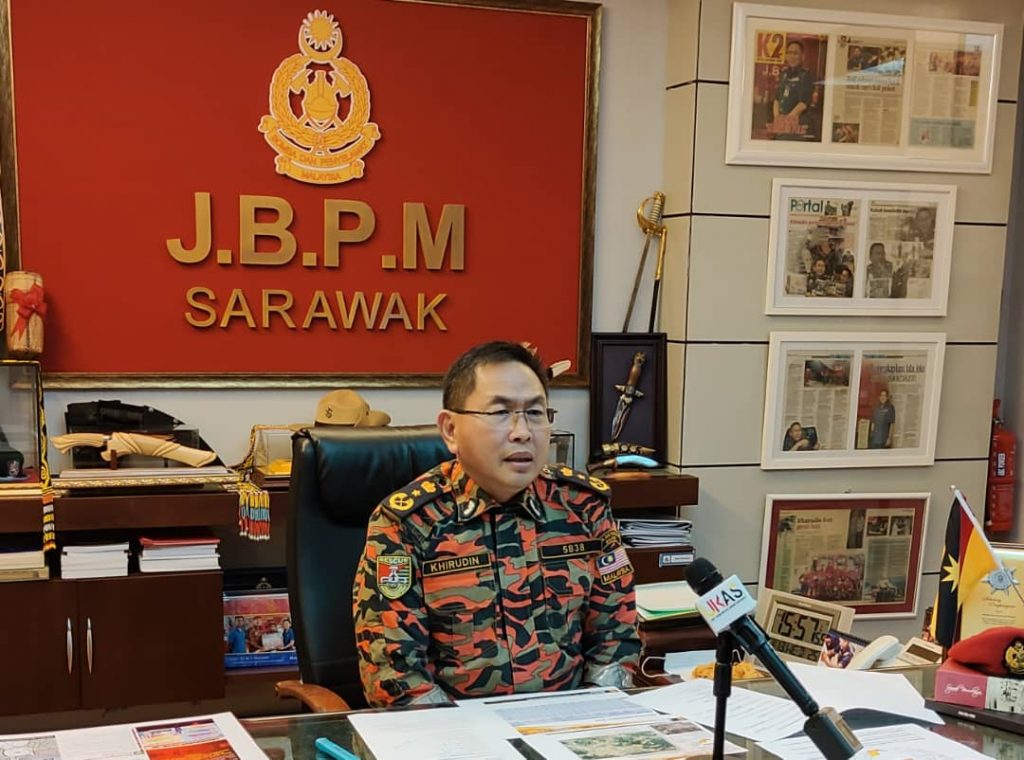 YS PKPjB Khirudin Drahman@Hussaini, Pengarah JBPM Negeri Sarawak ditemubual wartawan Unit Komunikasi Awam Sarawak (UKAS) di pejabatnya petang ini bagi mengupas isu banjir di Sarawak.Semua Balai Bomba dan Penyelamat di Negeri ini dikerahkan dalam langkah berjaga-jaga dalam menghadapi fenomena ini.