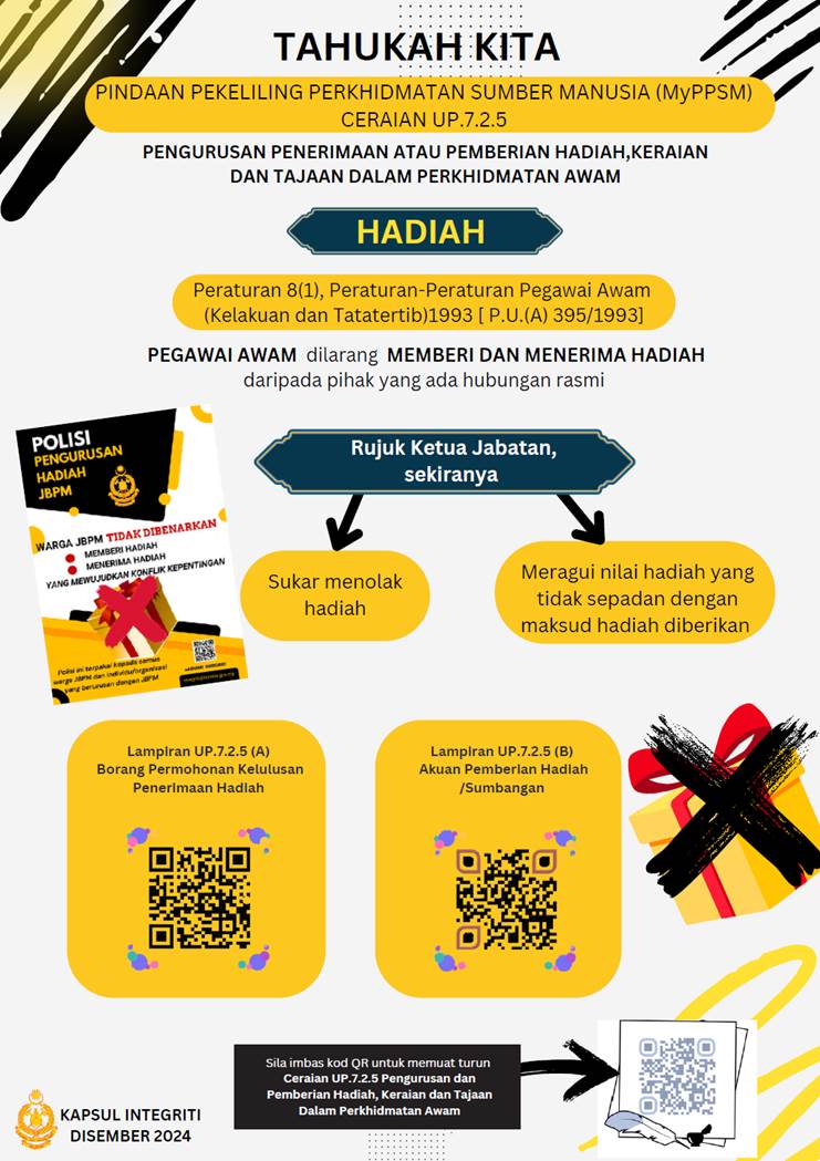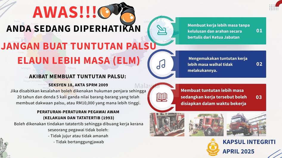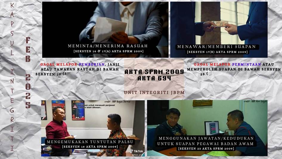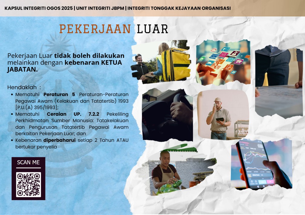 KAPSUL INTEGRITI (JBPM LABUAN) Sumber : Unit Integriti, Jabatan Bomba Dan Penyelamat Malaysia (JBPM) Koleksi Kapsul Integriti JBPM September 2025 Ogos 2025 Julai 2025 Jun 2025 Mei 2025 April 2025 Mac 2025 Februari 2025 Januari 2025 Disember 2024 November 2024 Oktober 2024