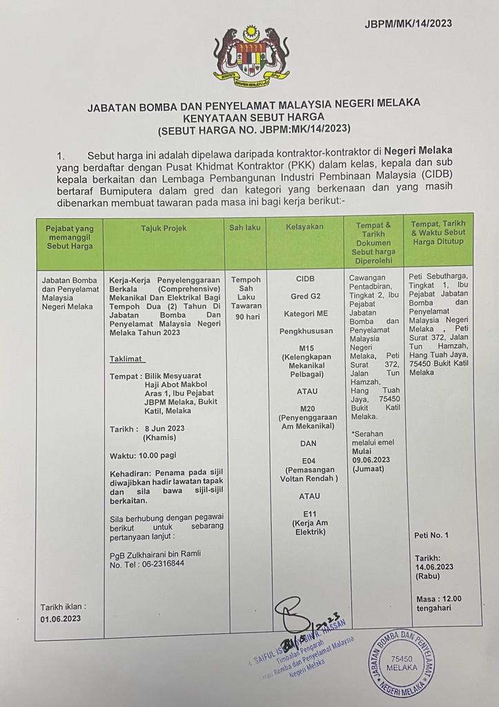 (SEBUT HARGA NO. JBPM:MK/14/2023)