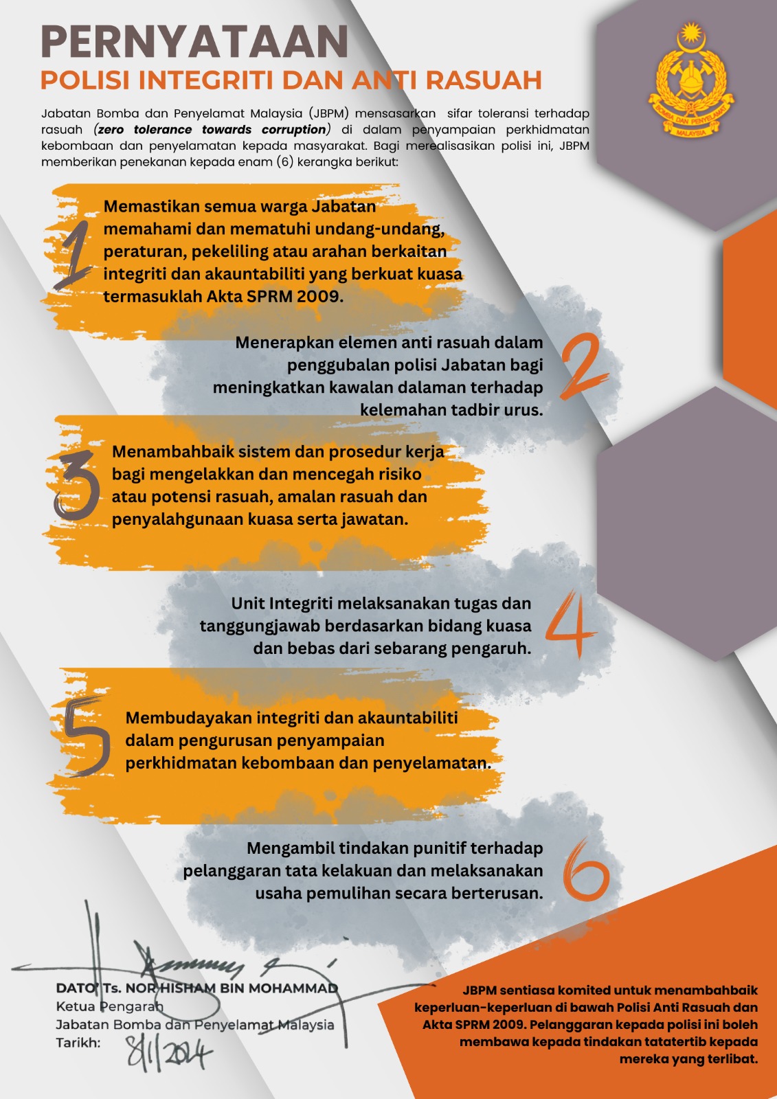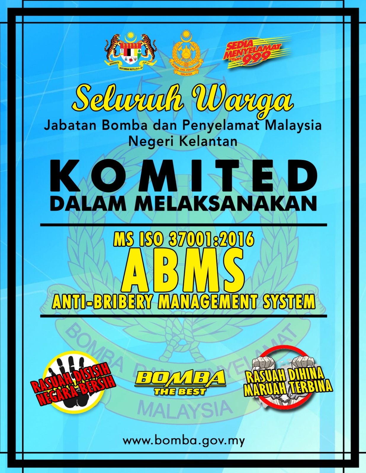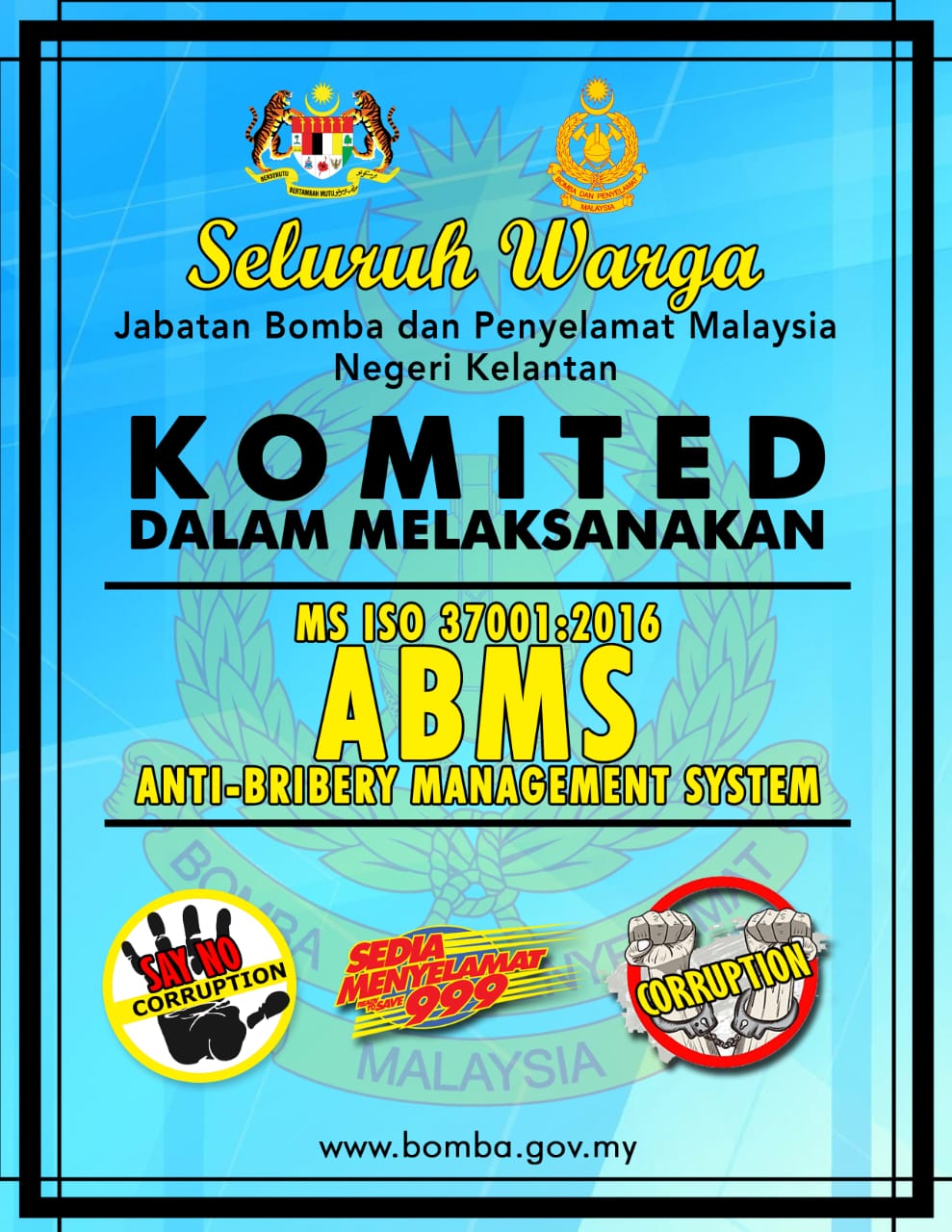 ANTI BRIBERY MANAGEMENT SYSTEM (ABMS) ISO 37001:2016 ABMSOBJEKTIF POLISI ANTI RASUAH (PINDAAN 2024)PENYATA POLISI INTEGRITI DAN ANTI RASUAH 2024AKTIVITI ABMSCERAMAH KESALAHAN-KESALAHAN RASUAH DAN PEMANTAPAN INTEGRITI JBPM KELANTANPEMERKASAAN INTEGRITIKAPSUL INTEGRITI 2025 OBJEKTIF POLISI PINDAAN 2024 PERNYATAAN POLISI PINDAAN 2024 Whistle Blower Policy POSTER POLISI PENGURUSAN HADIAH JBPM PINDAAN 2023 JBPM KELANTAN KOMITED MELAKSANAKAN ABMS ISO 370012016 JBPM KELANTAN KOMITED MELAKSANAKAN ABMS ISO 370012016