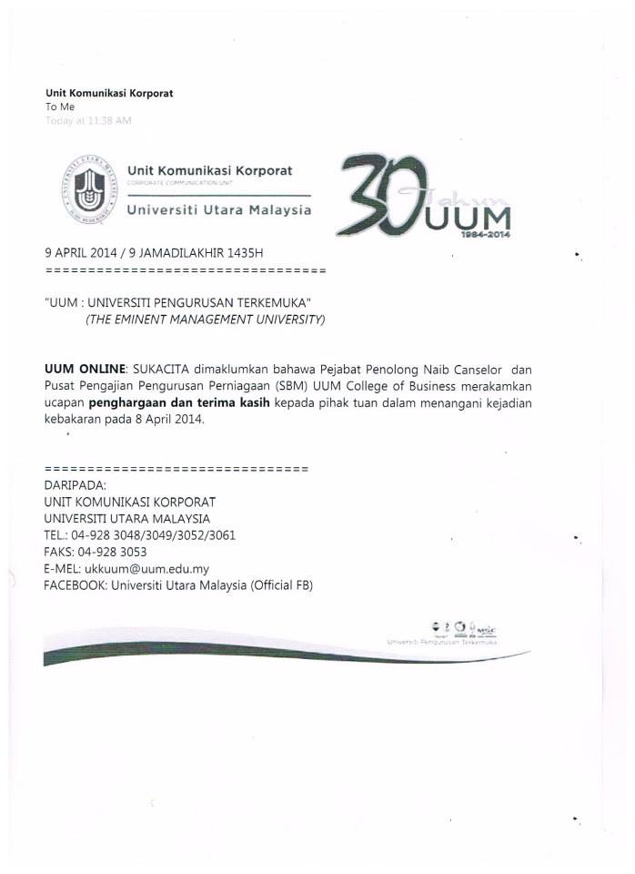 - Surat penghargaan daripada Universiti Utara Malaysia.