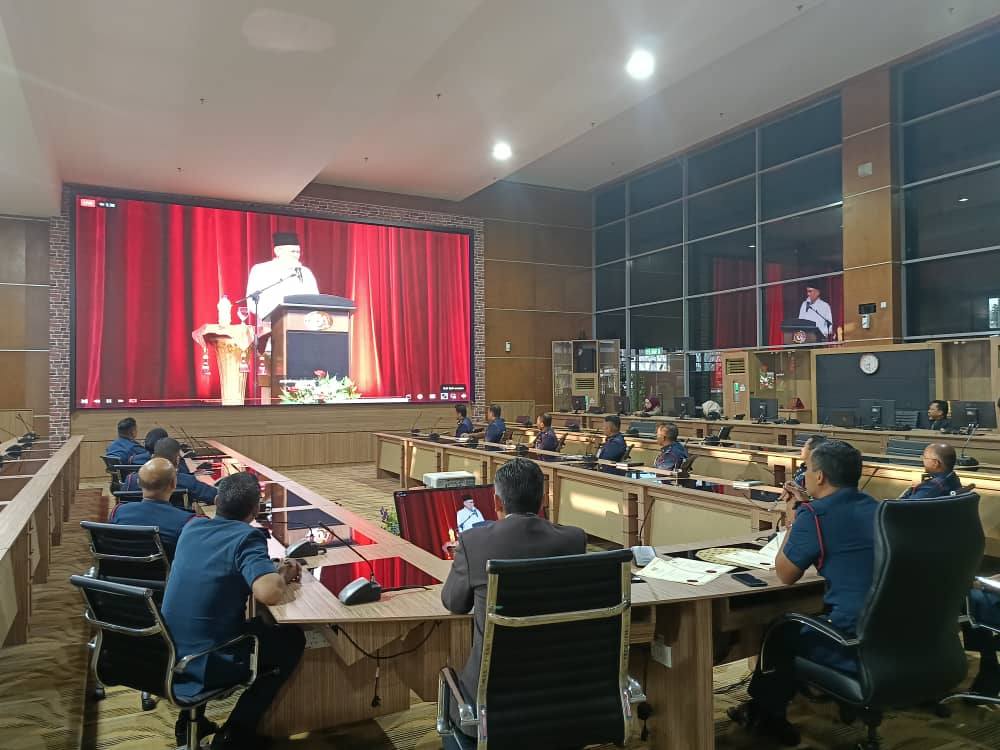 YAS Dato’ Ts. Nor Hisham bin Mohammad, JBPM Director General together with JBPM Senior Officials follow the Prime Minister’s New Year Command live online at Tanjung Meeting Room, JBPM Headquarters, Putrajaya.